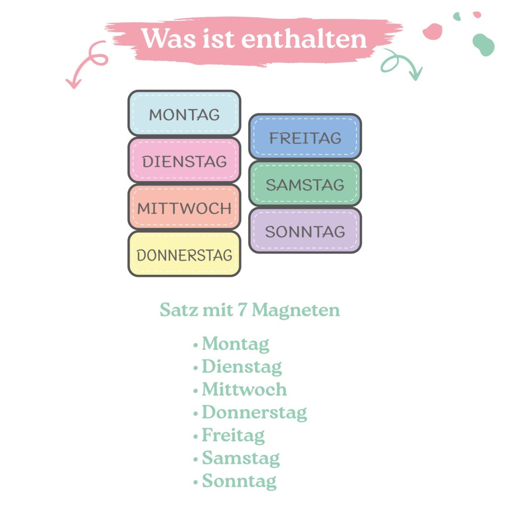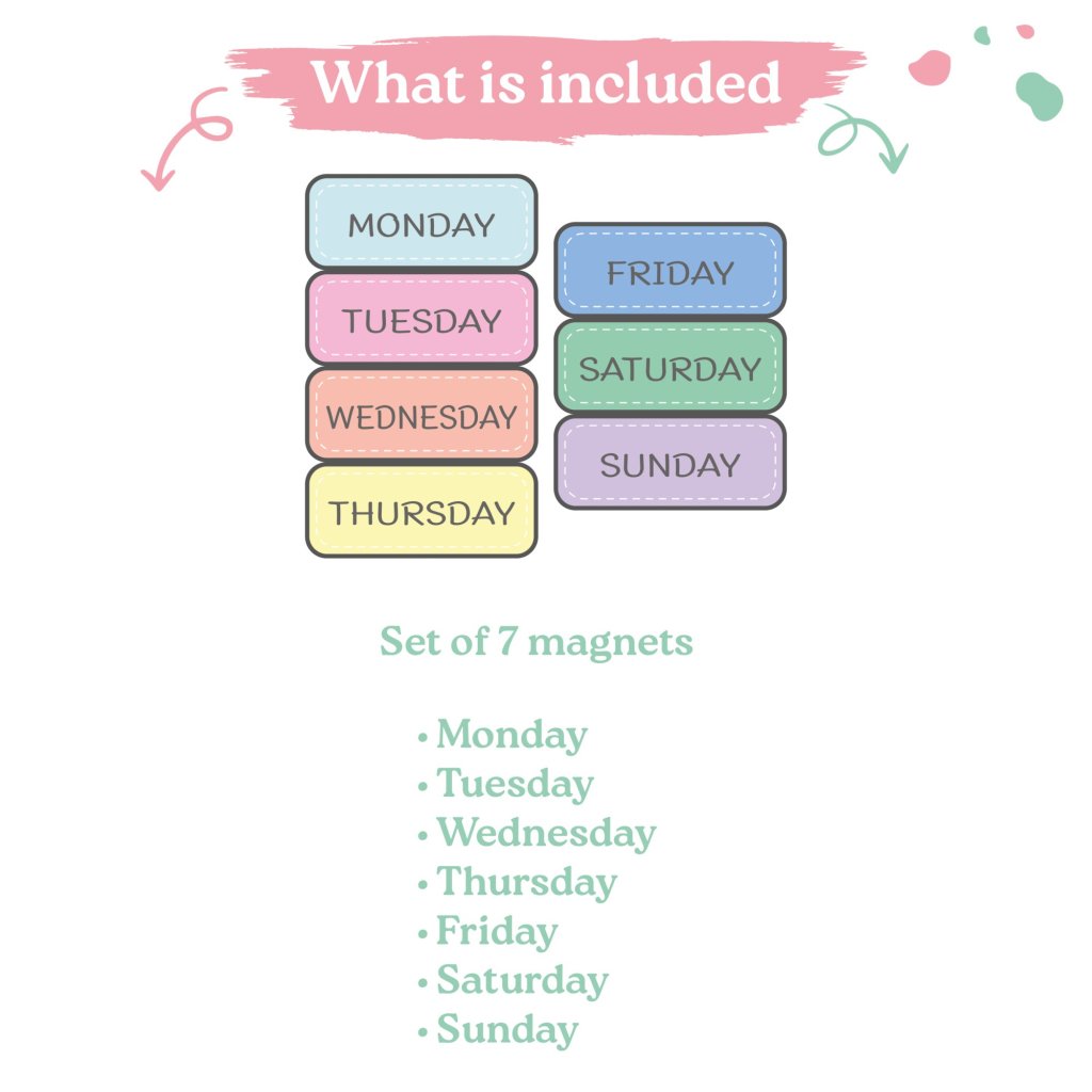 Help kids understand the rhythm of the week with these day-of-the-week magnets. Create your own custom weekly calendar on the fridge, pair each day with activities, or use them for learning and play – the possibilities are endless.