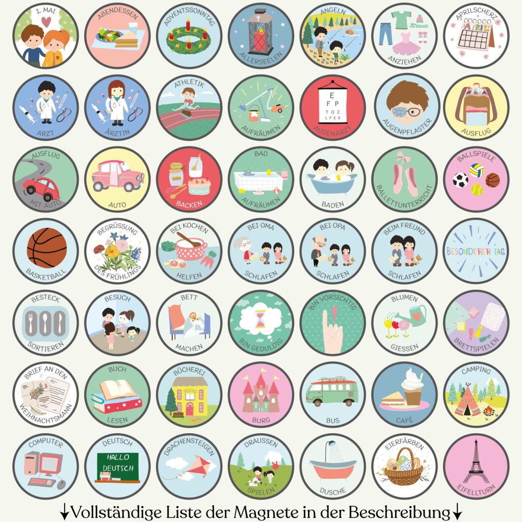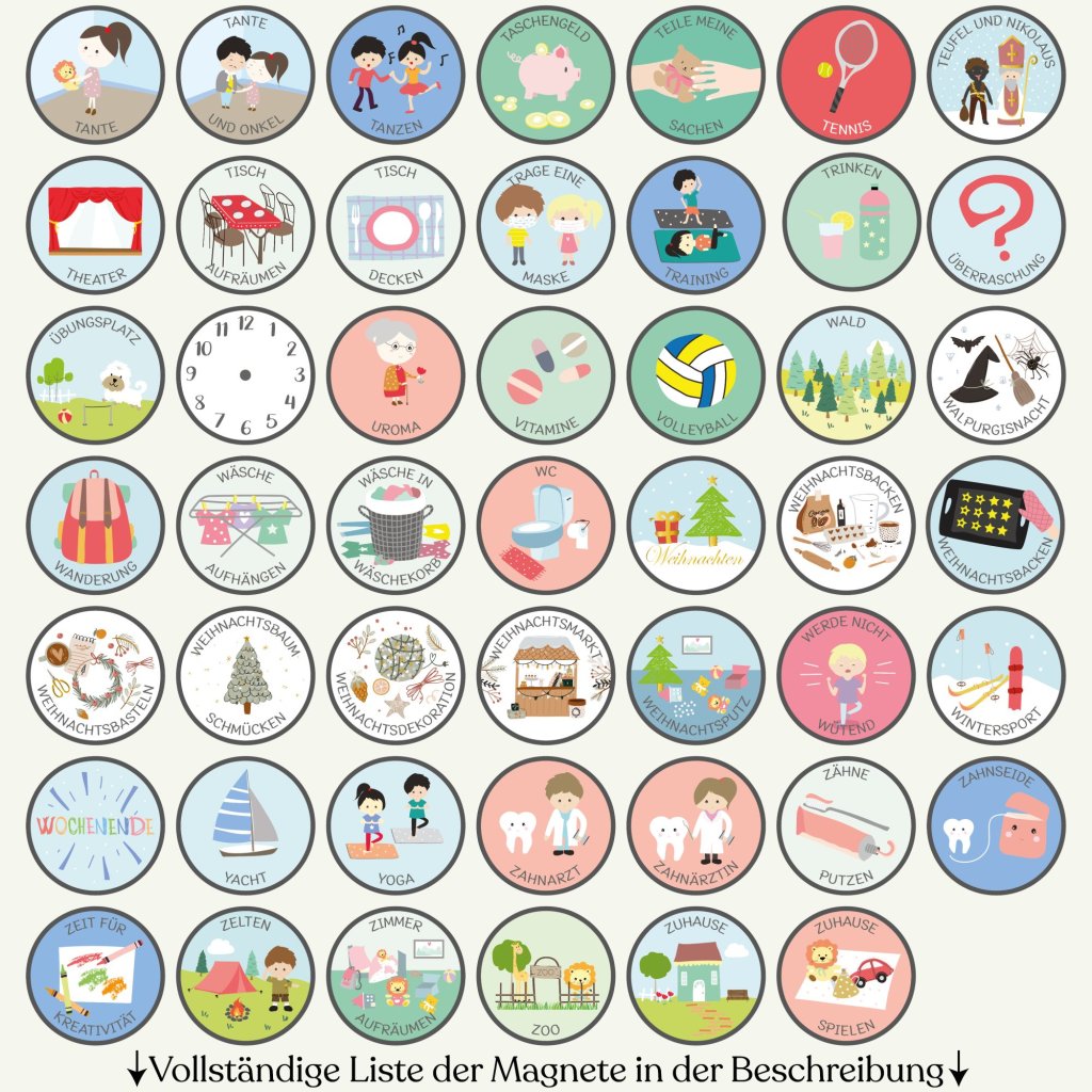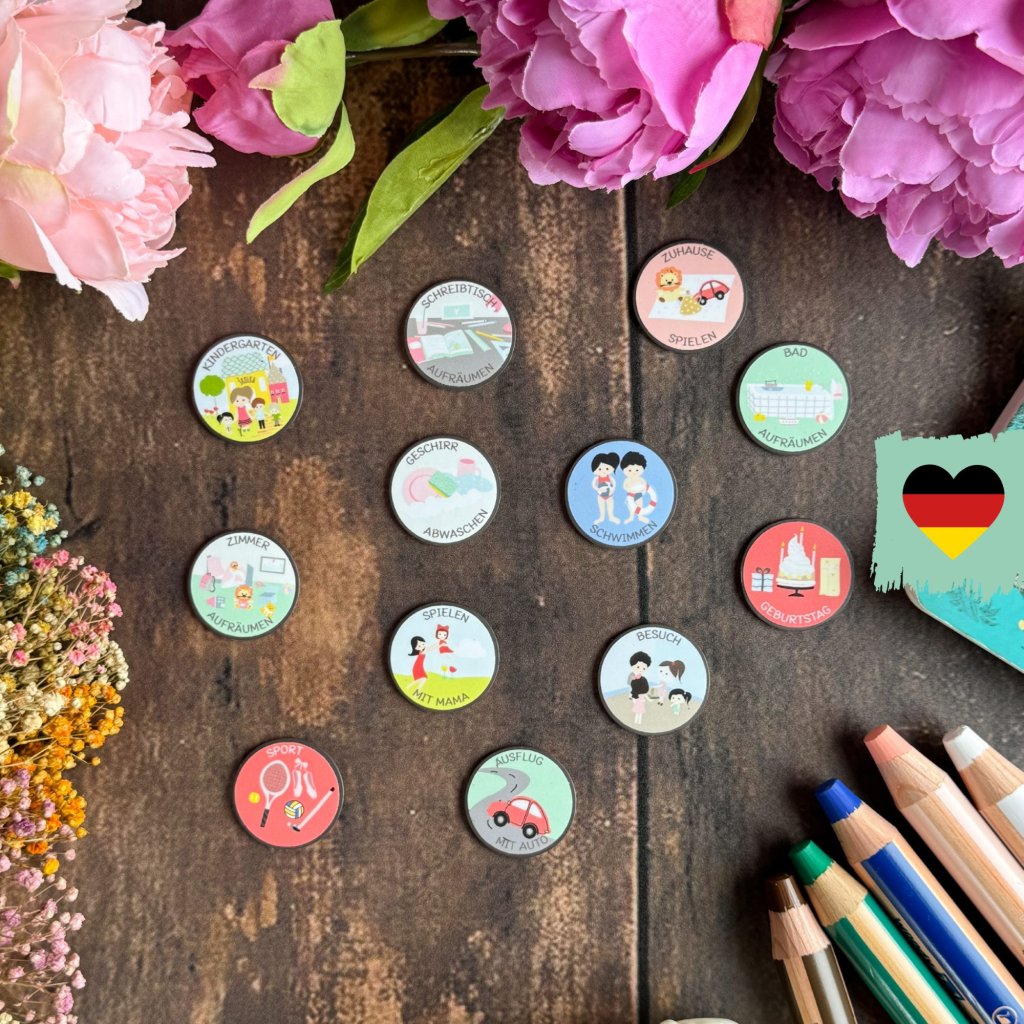 Choose exactly what your family needs from our complete collection of 300+ illustrated magnets. Select 10 to 100 pieces – no predetermined sets, no magnets left unused. Mix and match from all categories: daily activities, sports, emotions, weather, seasons, routines, and more. Every magnet is handcrafted in our Czech workshop with the same quality as our complete sets.