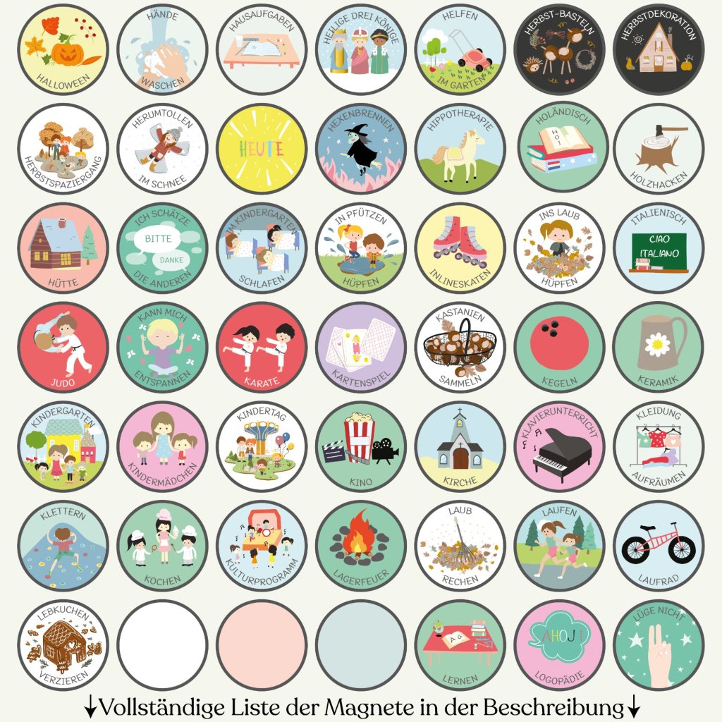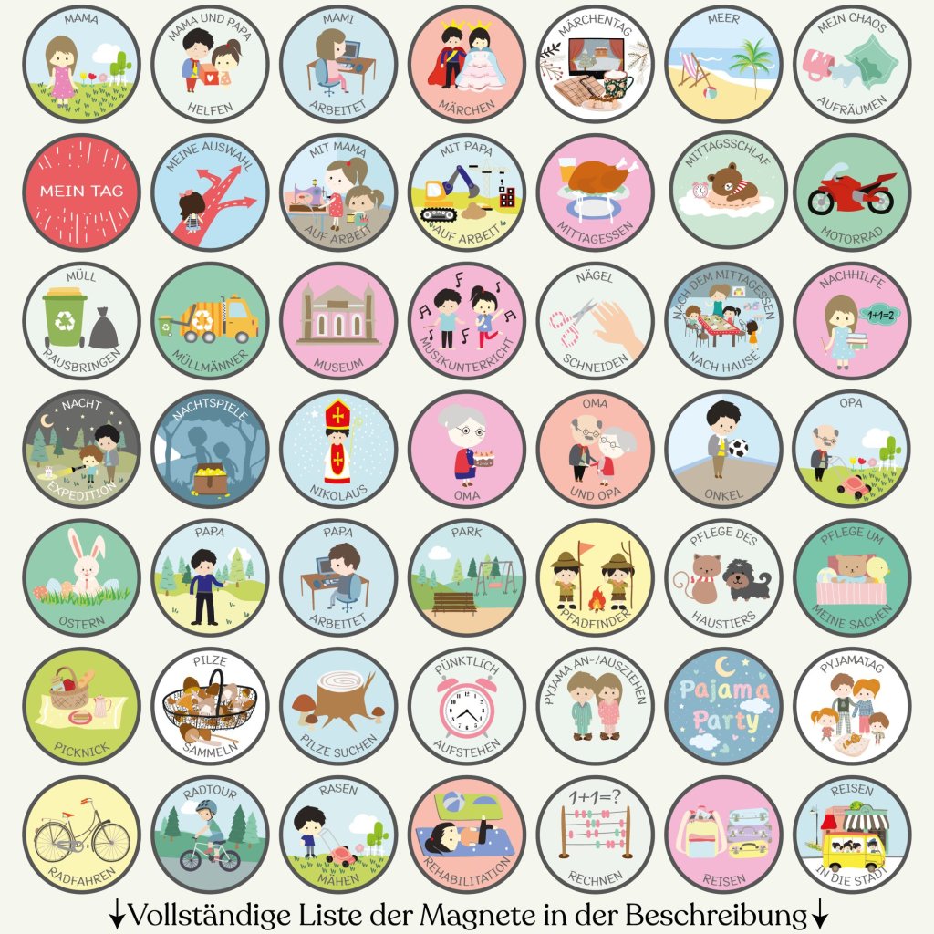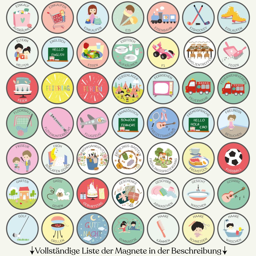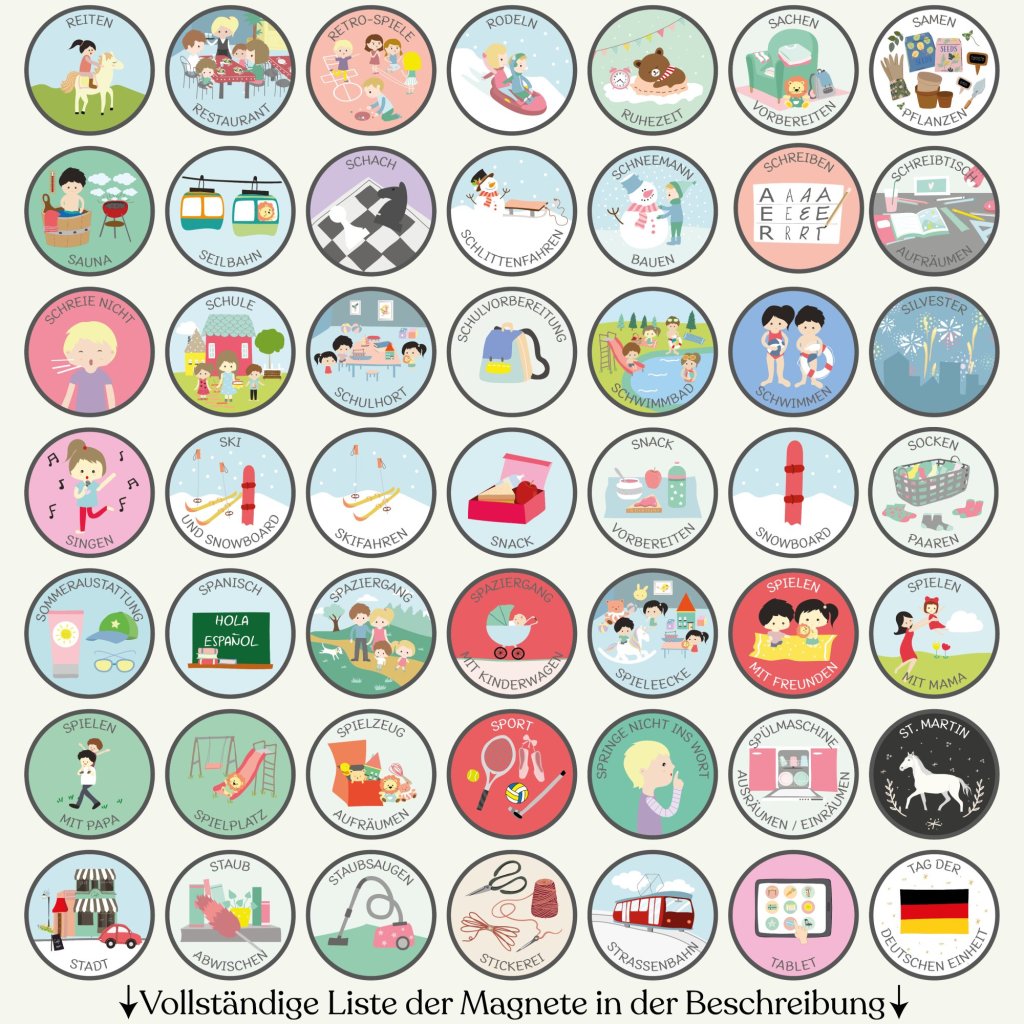 Choose exactly what your family needs from our complete collection of 300+ illustrated magnets. Select 10 to 100 pieces – no predetermined sets, no magnets left unused. Mix and match from all categories: daily activities, sports, emotions, weather, seasons, routines, and more. Every magnet is handcrafted in our Czech workshop with the same quality as our complete sets.
