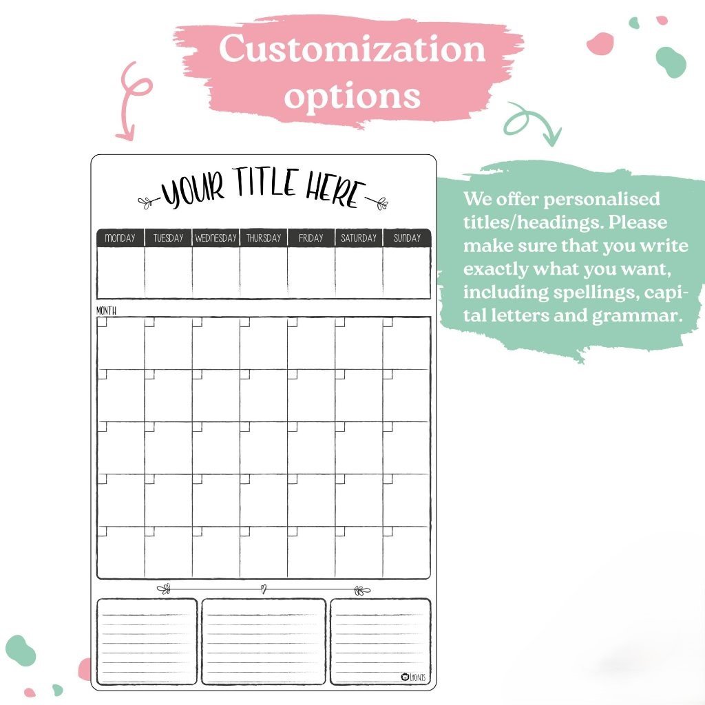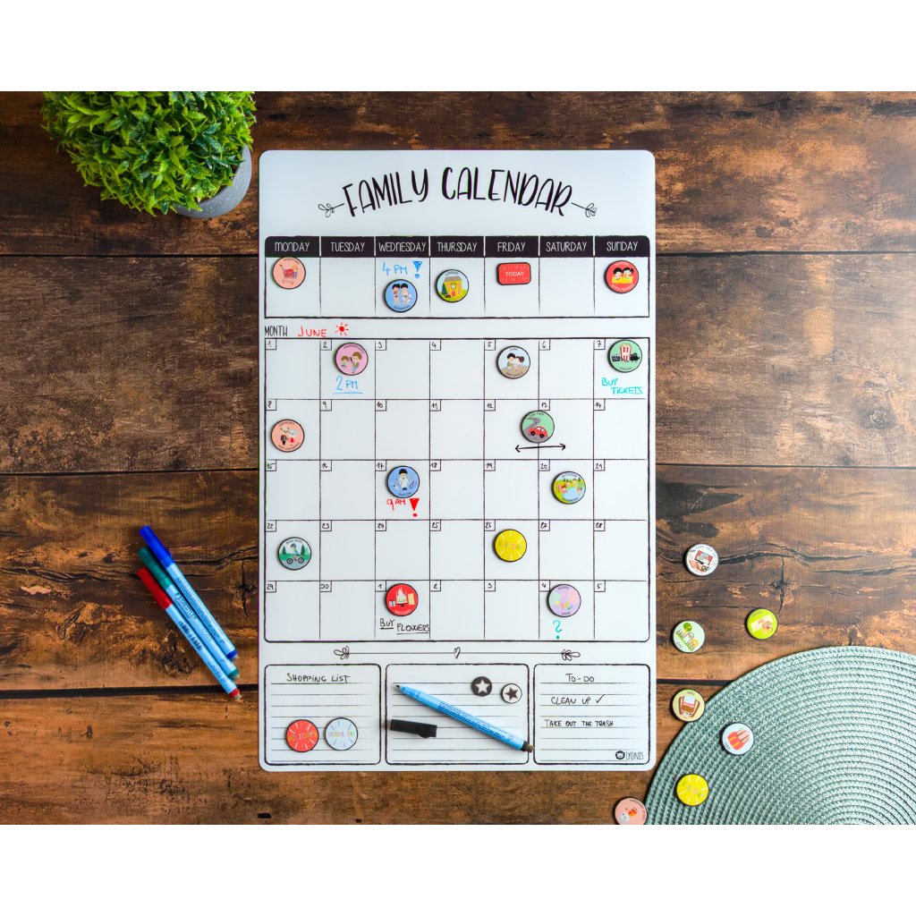 Magnetic Family Calendar - Monthly & Weekly Layout