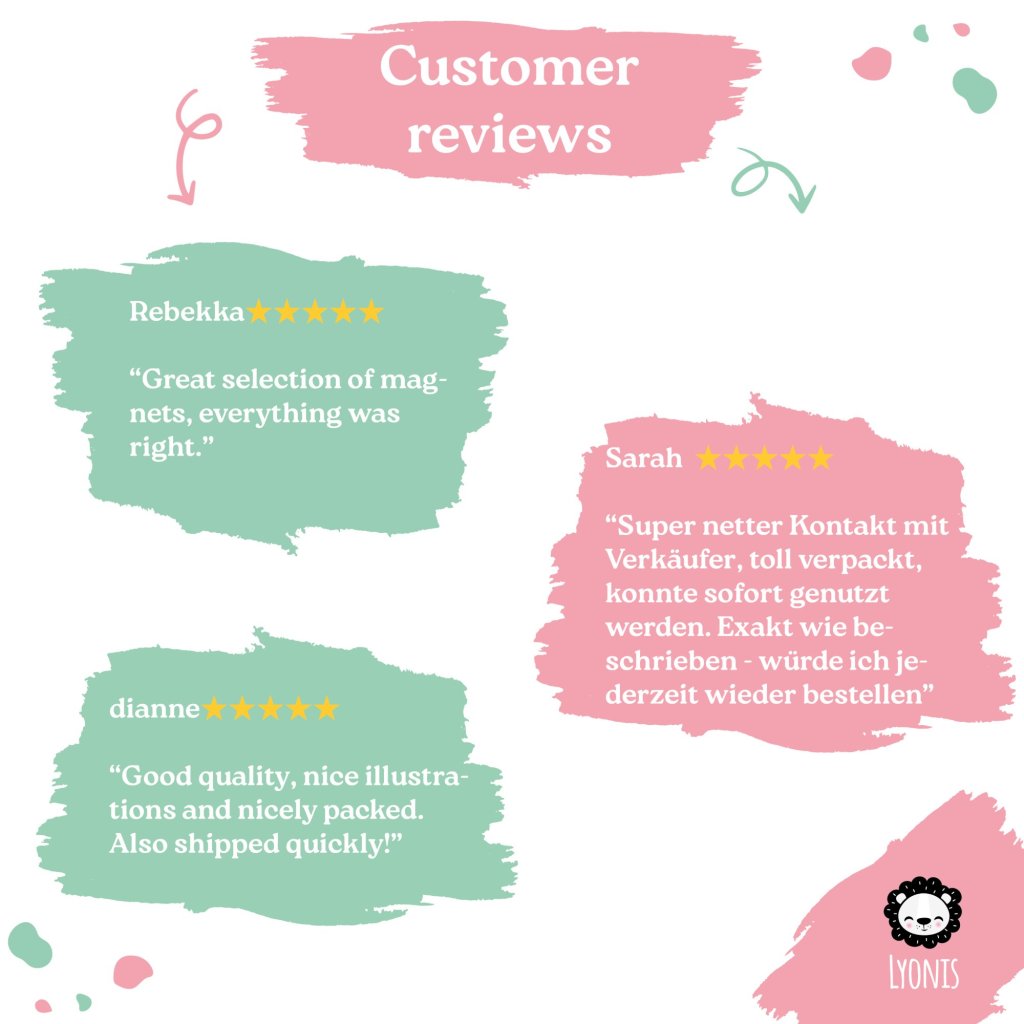 MATERIAL: Quality is essential to us. We make the magnets for you by hand. They are made from special strong magnetic foil, so they stick perfectly, and the surface is made of high-quality durable sticker material with a premium matte finish, making them look beautiful and last forever.
