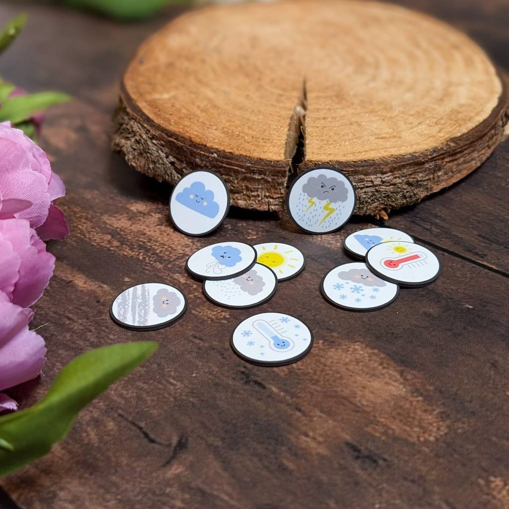 Every morning, look out the window together and talk about what kind of day awaits. Sunny? Rainy? Foggy? This weather magnet set helps children understand the changing seasons and daily weather patterns – playfully, interactively, and with real understanding.