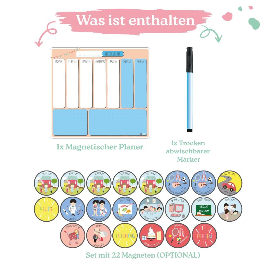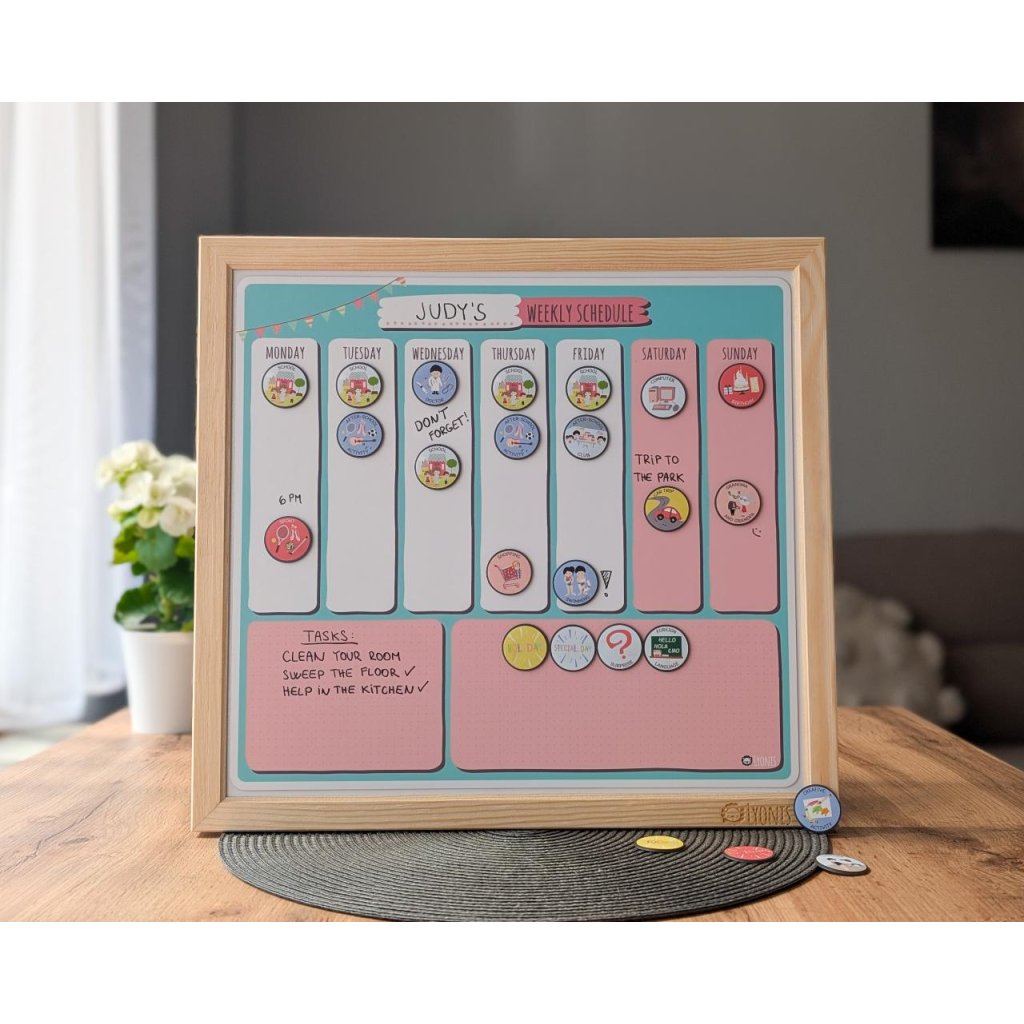 "Mom, what am I supposed to do after school?" "When's my soccer practice?" The questions never stop once school starts. This weekly planner gives school-age children what they need most: complete visibility over their entire week. With 22 hand-crafted magnets designed specifically for ages 6-12—covering school days, activities, homework, and responsibilities, kids can finally manage their increasingly complex schedules independently. No more forgotten gym bags. No more surprise assignments. Just clear structure that builds executive function skills naturally. One magnetic planner that evolves with them through their elementary years, teaching time management without the nagging.