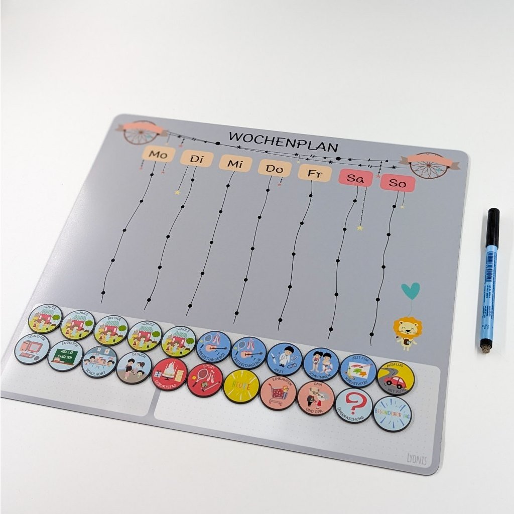 PACKAGE INCLUDES: 1x flexible magnetic calendar (approx. 33x36 cm), one black Steadtler marker. + OPTIONAL set of 22 handmade magnets (more details in the product description or attached photos). You can place the magnetic calendar directly in the center of action - on the refrigerator or on any other surface where magnets hold. For example, on our magnetic board in a wooden frame or self-adhesive magnetic board. (Board/Frame are not included in the package)